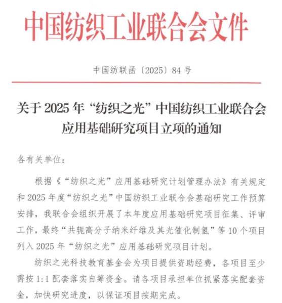 喜报||我院王军博士获批2025年度“纺织之光”中国纺织工业联合会应用基础研究项目立项