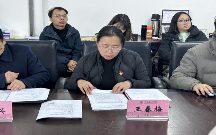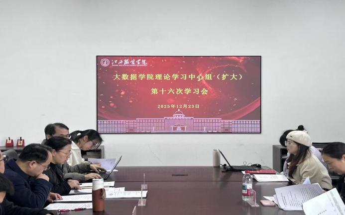 为深入学习宣传贯彻党的二十届四中全会精神及习近平总书记系列重要讲话精神,切实把思想和行动统一到党中央决策部署上来,2025年12月23日14:30,大数据学院在主教楼246室召开理论学习中心组(扩大)第十六次学习会议。学院党总支全体委员、教师党支部全体委员、学生党支部全体委员及科级以上干部参加会议,校党委组织部部长陈翠娥列席会议,会议由学院党总支书记王春梅主持。