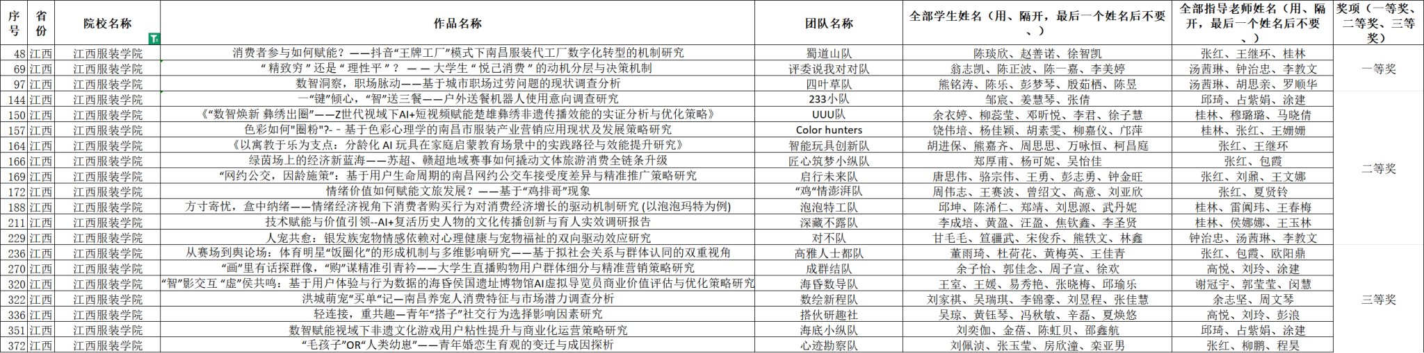 备赛期间,学校高度重视、精心组织,相关教学单位组建指导教师团队,围绕问卷设计、调研报告撰写、数据分析建模、答辩展示等环节对参赛团队进行多轮打磨与专项辅导。参赛学子刻苦钻研、通力协作,将数据科学、市场分析、纺织服装数智化等专业知识与实践应用紧密结合,充分展现了江服学子勤学善思、勇于突破的良好风貌。